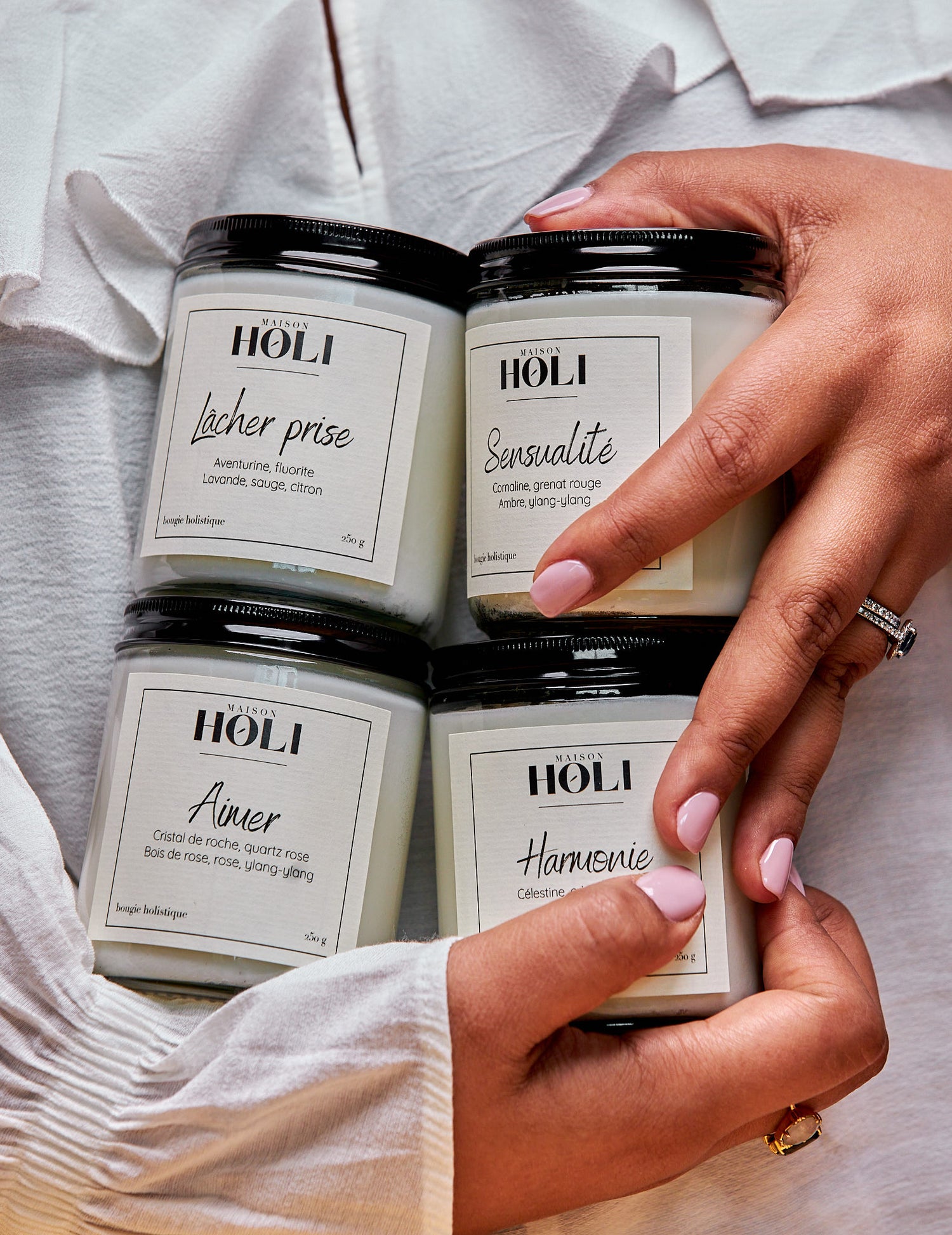 Chez Maison Holí, nous croyons que chaque moment mérite d'être teinté de magie et de sérénité. Nos bougies artisanales, soigneusement infusées de cristaux, sont conçues pour vous soutenir dans votre développement personnel et pour harmoniser votre quotidien.
